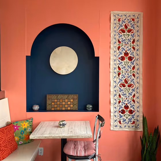 Bring a bright pop of warmth to your space with Benjamin Moore 2010-40 Coral Gables. This vibrant coral hue is perfect for adding a lively touch to any room. Pair Coral Gables with soft neutrals like Benjamin Moore OC-17 White Dove or Benjamin Moore HC-173 Edgecomb Gray for a balanced and refreshing look. To create a bold and eye-catching contrast, try combining Coral Gables with deep shades like Benjamin Moore HC-166 Kendall Charcoal or Benjamin Moore AF-290 Caliente. Whether you're looking to create a playful and energetic atmosphere or a more sophisticated and dramatic environment, Coral Gables is a versatile color choice that will liven up your home decor.
