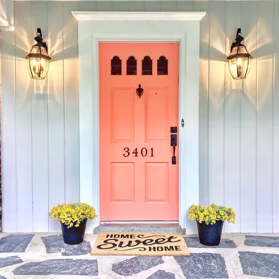 Looking for a fresh new look for your house exterior or starting from skretch? We’ve collected pictures of real-life homes that have been painted with this warm hue. Find inspiration for your house’s exterior, front doors, gates, shutters, frames or windows.