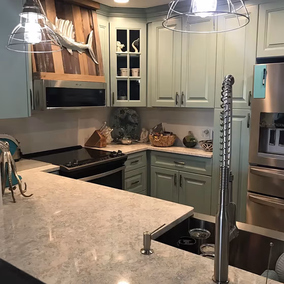 Want a stylish kitchen? View real-life photo examples of this fascinating cool hue is paired with backsplashes, countertops, and hardware.