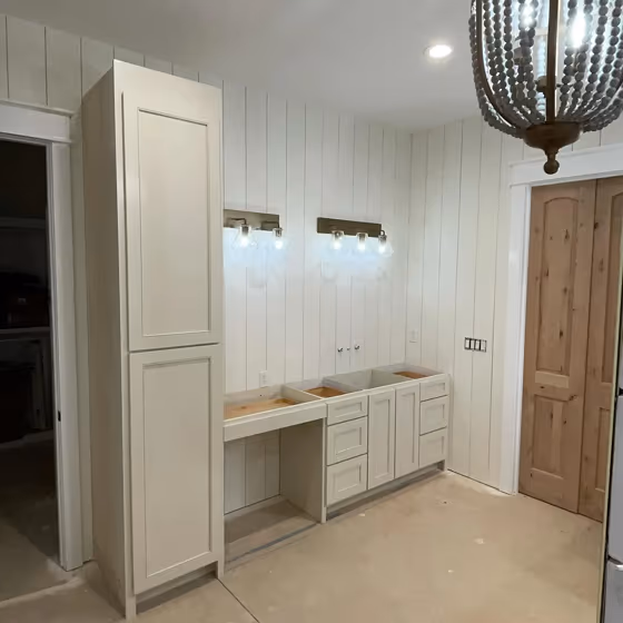 Benjamin Moore OC-7 on kitchen cabinets (5 photos)