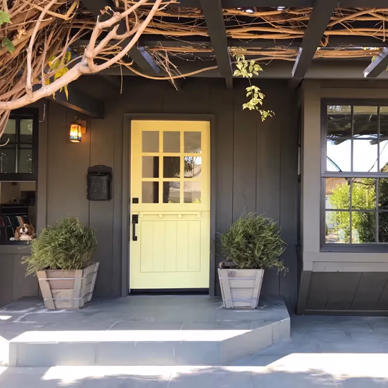 Looking for a fresh new look for your house exterior or starting from skretch? We’ve collected pictures of real-life homes that have been painted with this warm hue. Find inspiration for your house’s exterior, front doors, gates, shutters, frames or windows.