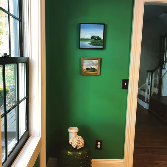 Step into a world of sophisticated charm with Benjamin Moore's Dunmore Green (CW-540). This rich and elegant hue complements both traditional and modern spaces, making it a versatile choice for various rooms in a home. Picture a cozy living room adorned with plush velvet sofas or a serene bedroom retreat with crisp white linens against walls painted in Dunmore Green. Whether used as an accent color in a study or as the main wall color in a dining room, Dunmore Green adds depth and character to any space. Let this timeless color transform your home into a stylish sanctuary.