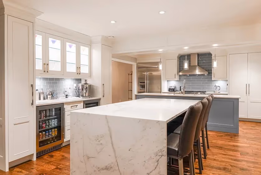 Want a stylish kitchen? View real-life photo examples of this fascinating cool hue is paired with backsplashes, countertops, and hardware.