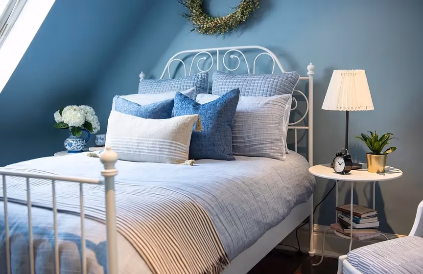 - Cool blue shades make a room feel sleek, fresh, and modern, perfect for bedrooms, bathrooms, and home offices where a sense of calm and sophistication is desired.