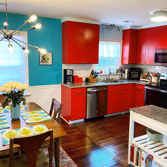 - Warm red shades add a vibrant and passionate touch to a room, creating a dynamic and energetic atmosphere, perfect for dining rooms, living rooms, and accent walls.