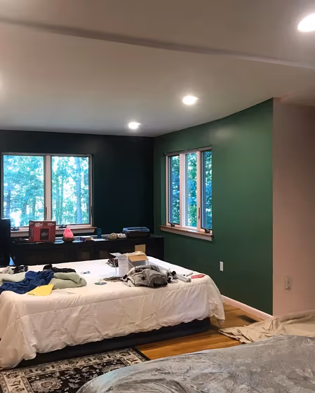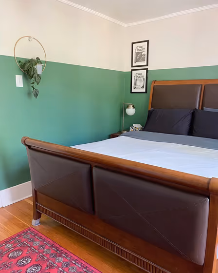 The Fairmont Green wall acts as a grounding element in the space, creating a sense of tranquility and freshness. Pairing it with accents in Benjamin Moore's Simply White OC-117 can offer a clean and modern look, while touches of Cranberry Cocktail 2083-20 can bring warmth and depth to the room. Subtle hints of Beacon Gray 2126-60 as a contrasting color can enhance the serene atmosphere of the interior. The versatile Fairmont Green serves as a versatile backdrop for various design styles and can easily be complemented by different shades and textures.