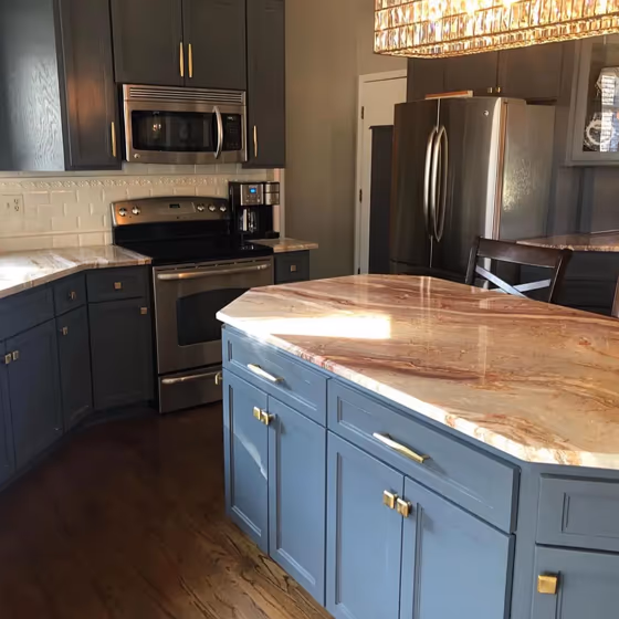 Want a stylish kitchen? View real-life photo examples of this fascinating cool hue is paired with backsplashes, countertops, and hardware.