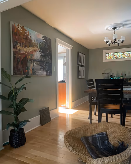 View the photos of real spaces painted with this that were not included in specific categories.Close-ups, painted furniture, storages and dressers, hallways, stairs and ceilings.