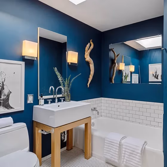 - Cool blue shades make a room feel sleek, fresh, and modern, perfect for bedrooms, bathrooms, and home offices where a sense of calm and sophistication is desired.