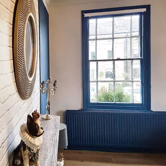 Use the slider to see how this dark blue shade looks under different lighting: