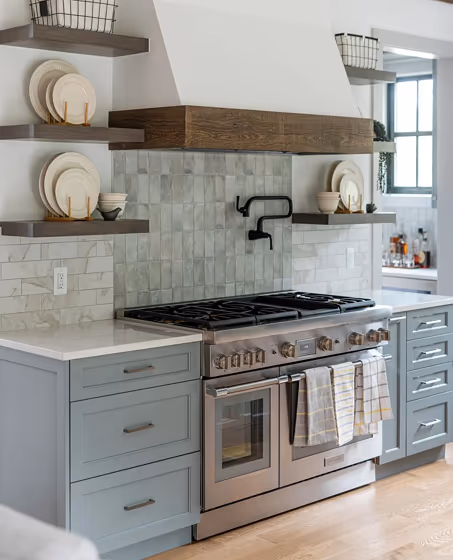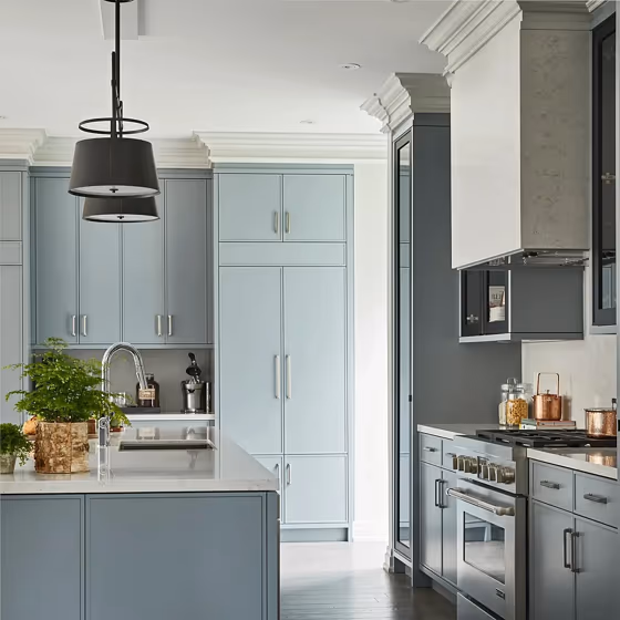 Want a stylish kitchen? View real-life photo examples of this fascinating cool hue is paired with backsplashes, countertops, and hardware.