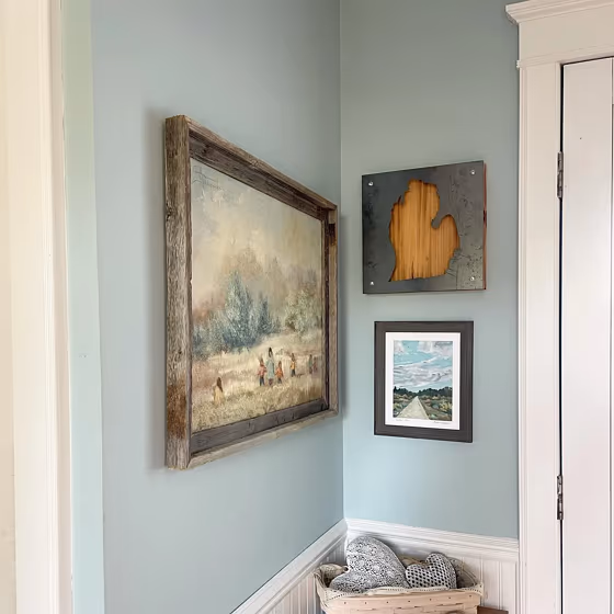 Create a serene and ethereal atmosphere with Benjamin Moore Gossamer Blue 2123-40. This gentle and calming hue pairs beautifully with soft neutrals such as cream and light grey, adding a touch of sophistication to any space. Combine Gossamer Blue with natural wood accents or metallic finishes for a chic and modern look. Elevate your home decor with this versatile and elegant color, bringing a sense of tranquility and elegance to your interior design scheme.