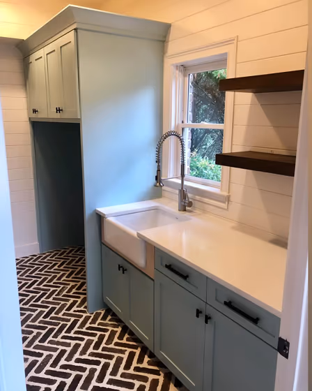 Want a stylish kitchen? View real-life photo examples of this fascinating cool hue is paired with backsplashes, countertops, and hardware.