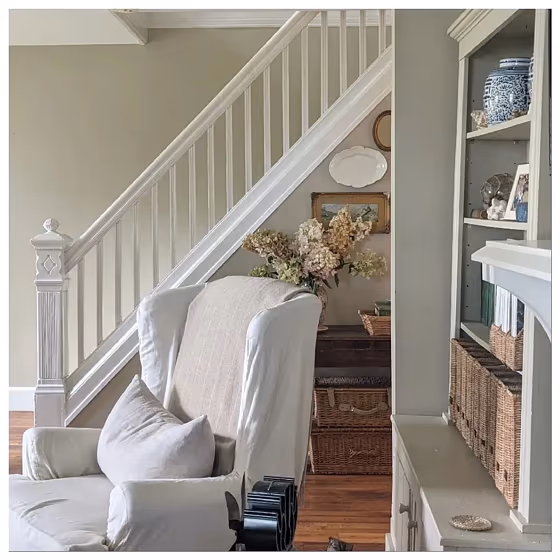 View the photos of real spaces painted with this that were not included in specific categories.Close-ups, painted furniture, storages and dressers, hallways, stairs and ceilings.