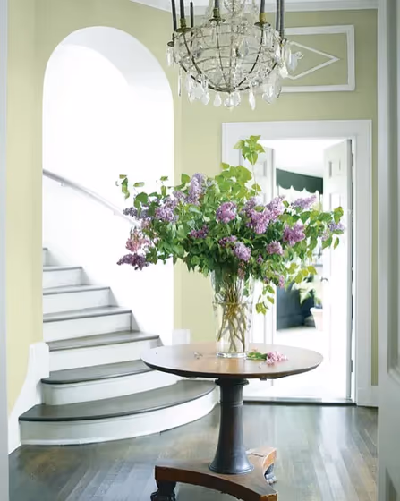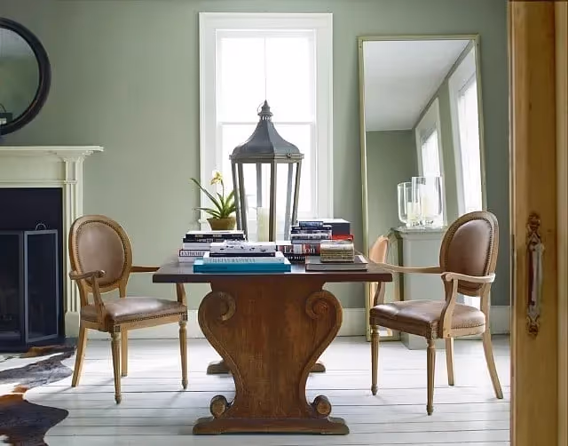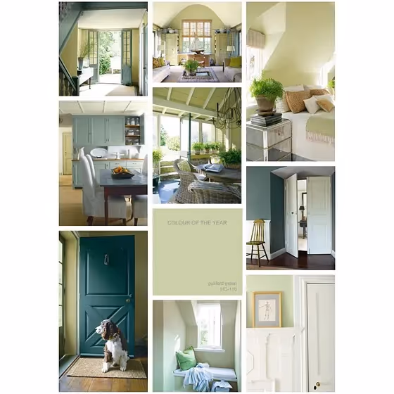 Benjamin Moore's HC-116 Guilford Green is a soft, elegant hue that brings a touch of serenity and freshness to any space. This versatile color pairs beautifully with both warm and cool tones, making it perfect for creating a harmonious color palette. Complement Guilford Green with neutrals like HC-172 Revere Pewter or HC-147 Woodlawn Blue for a cohesive and sophisticated look. For a bolder statement, combine it with deep navy tones like HC-154 Hale Navy or rich jewel tones such as HC-143 Wythe Blue. Whether used as a main color or as an accent, Guilford Green adds a timeless and calming vibe to any room.