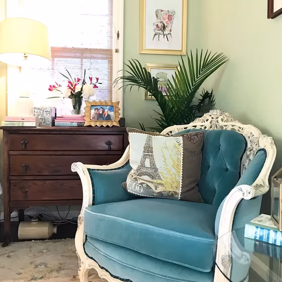 Check out this stunning Mid-tone color used in real living rooms. Explore how this Green shade can create a unique space
