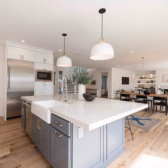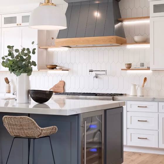 Want a stylish kitchen? View real-life photo examples of this fascinating cool hue is paired with backsplashes, countertops, and hardware.
