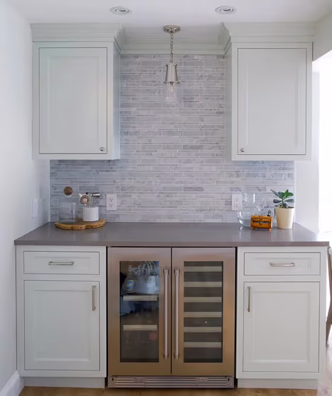 Want a stylish kitchen? View real-life photo examples of this fascinating cool hue is paired with backsplashes, countertops, and hardware.
