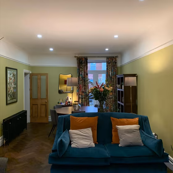 Act like a pro: When choosing paint with an LRV of 48.78%, pay attention to your bulbs' brightness. Light brightness is measured in lumens. The lower the paint's LRV, the higher lumen level you need. Every square foot of room needs at least 40 lumens. That means for a 200 ft2 living room you’ll need about 8000 lumens of light – e.g., eight 1000 lm bulbs.