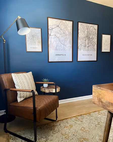 Check out this stunning Dark color used in real living rooms. Explore how this Blue shade can create a unique space