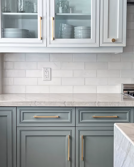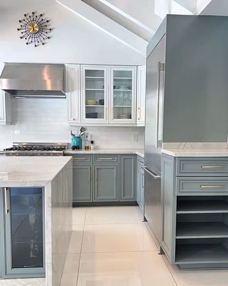 Want a stylish kitchen? View real-life photo examples of this fascinating cool hue is paired with backsplashes, countertops, and hardware.
