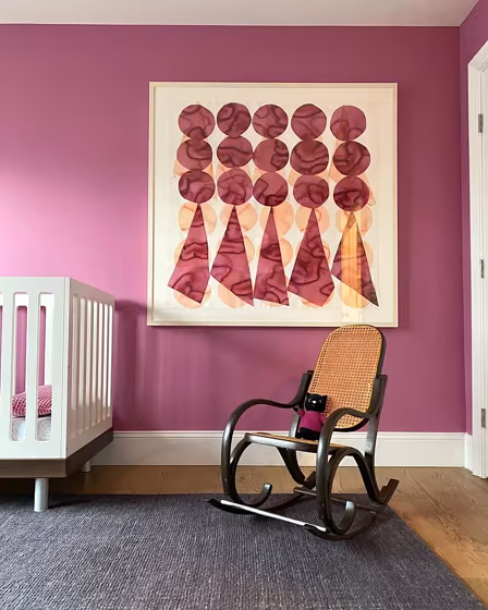 This color scheme is a combination of two shades that are opposite each other on the color wheel. The high contrast between these colors creates a vibrant and dynamic visual effect. For the color Melrose Pink with a purple hue, complementary colors are those with a yellow hue close to 149, such as Benjamin Moore Pleasant Valley and Stratton Blue.