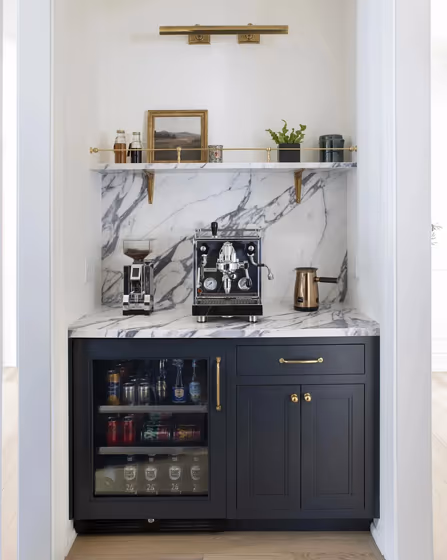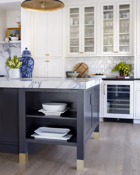 Want a stylish kitchen? View real-life photo examples of this fascinating cool hue is paired with backsplashes, countertops, and hardware.
