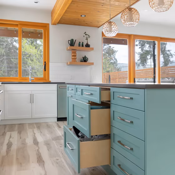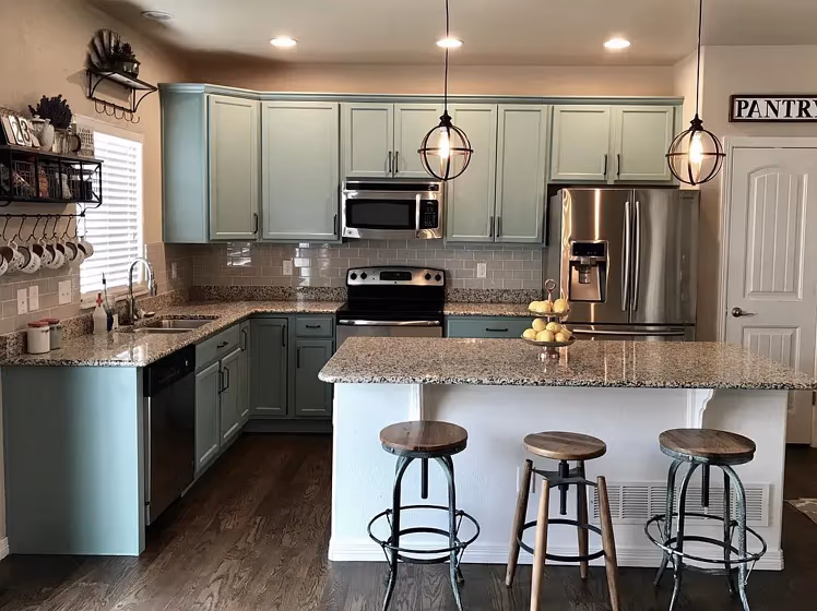 Want a stylish kitchen? View real-life photo examples of this fascinating cool hue is paired with backsplashes, countertops, and hardware.