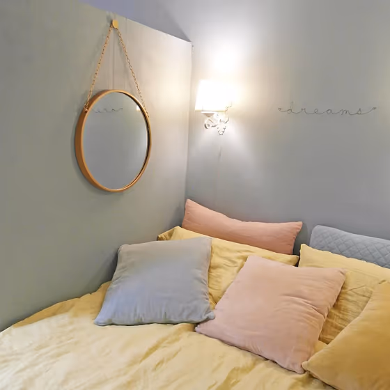 Act like a pro: Mixing warm and cool shades is a must have to get harmonius interior. Add accents that contrast with the primary color to create visual balance. If your walls are a warm color, don’t forget to add accent in cold colors (furniture, art, décor). A good practice is too use a complementary color scheme.