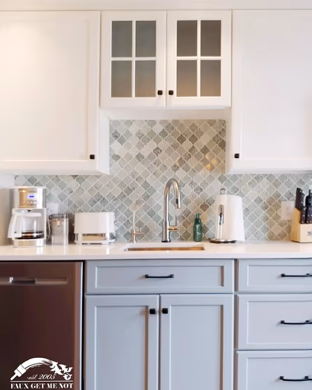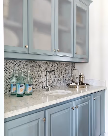 Want a stylish kitchen? View real-life photo examples of this fascinating cool hue is paired with backsplashes, countertops, and hardware.