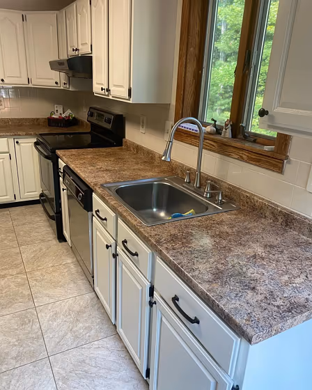 Benjamin Moore OC-50 on kitchen cabinets (3 photos)