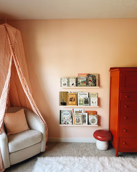 Experience the warm and inviting hue of Peach Blossom (Benjamin Moore 2175-50) infusing your living room with a cozy charm and a touch of playfulness. This versatile color effortlessly transitions from vibrant and energetic in a nursery or children's room to sophisticated and serene in a bedroom or home office. Allow Peach Blossom (2175-50) to create a peaceful ambiance in your relaxation space, or bring a pop of color to your kitchen or dining room for a refreshing and modern feel. Embrace the beauty of this soft and soothing shade, perfect for adding a subtle hint of elegance to any space.