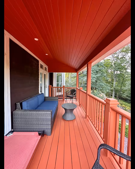 View the photos of real spaces painted with this red that were not included in specific categories.Close-ups, painted furniture, storages and dressers, hallways, stairs and ceilings.