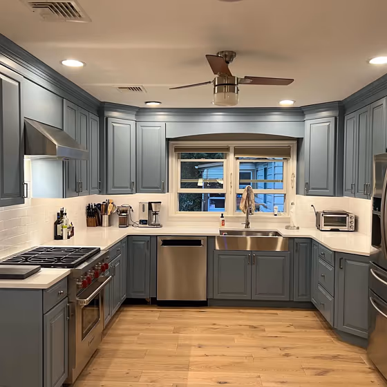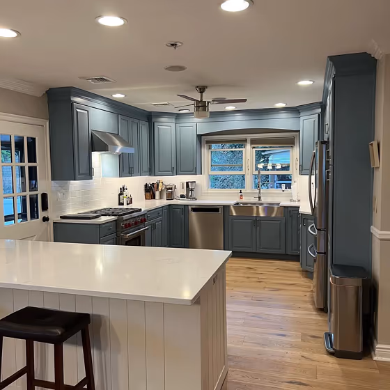 Want a stylish kitchen? View real-life photo examples of this fascinating cool hue is paired with backsplashes, countertops, and hardware.