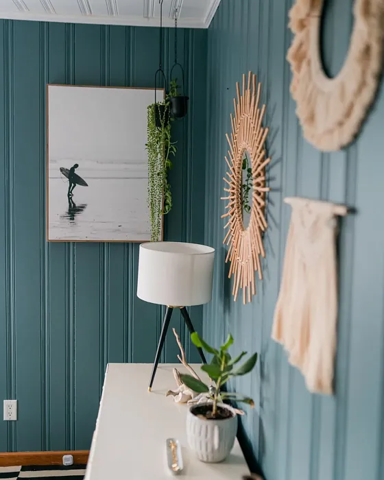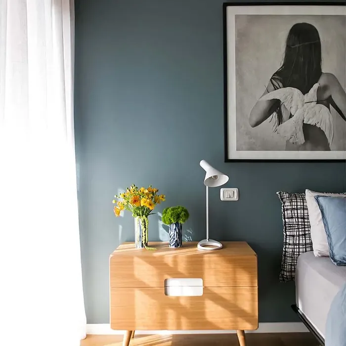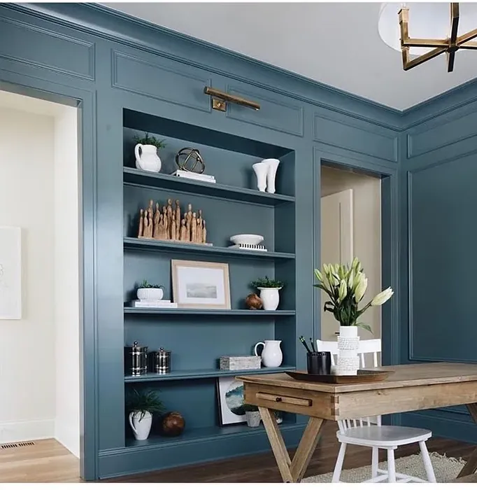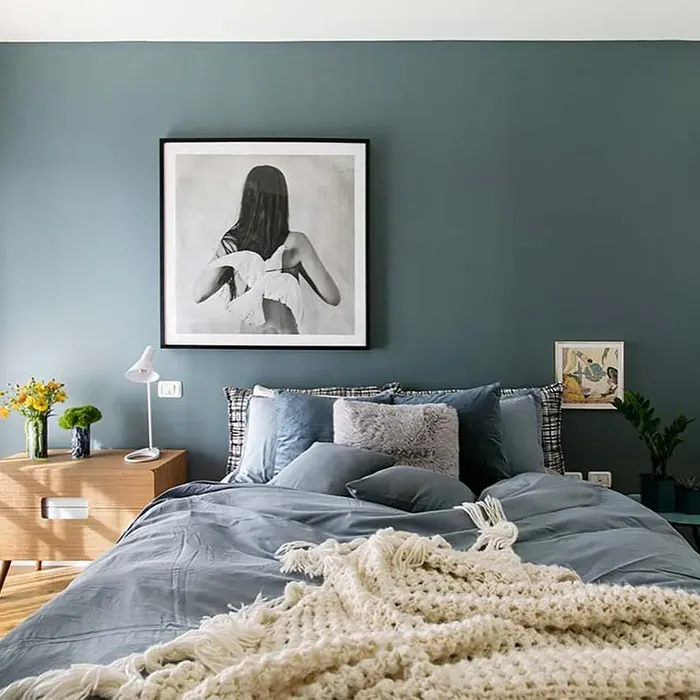 Benjamin Moore 1636 Providence Blue lends a sense of calm and sophistication to any space. This warm, rich tone creates a welcoming ambiance, perfect for both traditional and modern interiors. Pair it with crisp white trim for a classic look, or with soft neutrals like Benjamin Moore 2112-60 Cedar Key for a more contemporary feel. This versatile color works well with a variety of decor styles and can easily be incorporated into any room in your home.