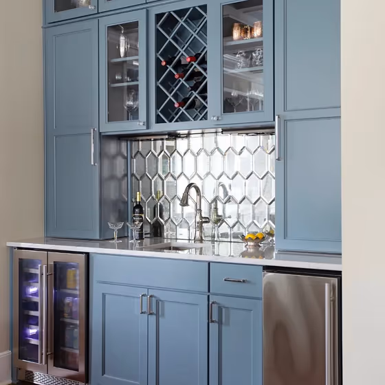 Want a stylish kitchen? View real-life photo examples of this fascinating cool hue is paired with backsplashes, countertops, and hardware.