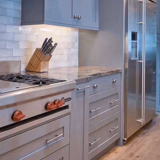 Want a stylish kitchen? View real-life photo examples of this fascinating cool hue is paired with backsplashes, countertops, and hardware.