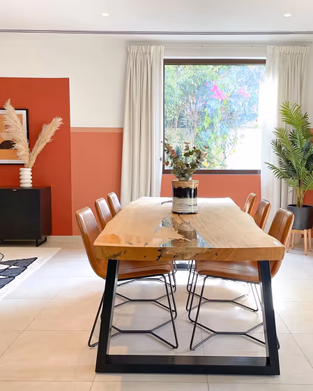 - Warm red shades add a vibrant and passionate touch to a room, creating a dynamic and energetic atmosphere, perfect for dining rooms, living rooms, and accent walls.