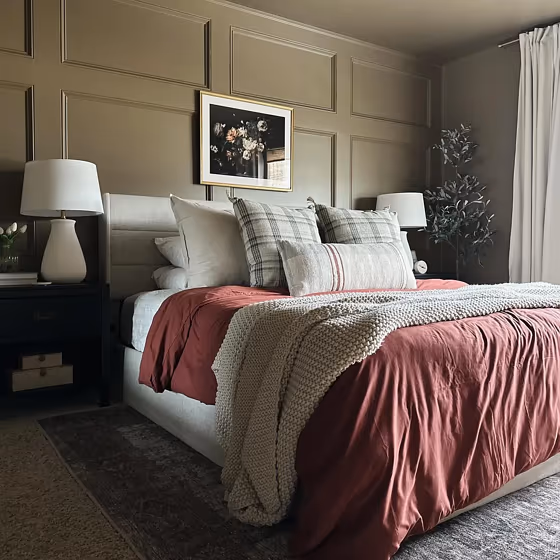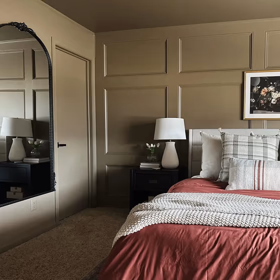 We’ve hand-picked a beautiful collection of photos of this amazing Beige shade used in real bedrooms. Take a look and imagine how this wonderful warm Dark paint color could transform your own bedroom space.