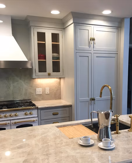Want a stylish kitchen? View real-life photo examples of this fascinating cool hue is paired with backsplashes, countertops, and hardware.