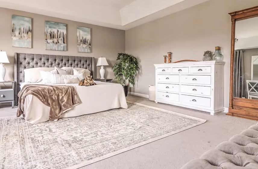We’ve hand-picked a beautiful collection of photos of this amazing Beige shade used in real bedrooms. Take a look and imagine how this wonderful warm Mid-tone paint color could transform your own bedroom space.