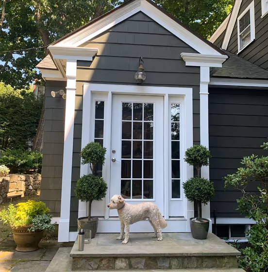 Looking for a fresh new look for your house exterior or starting from skretch? We’ve collected pictures of real-life homes that have been painted with this warm hue. Find inspiration for your house’s exterior, front doors, gates, shutters, frames or windows.