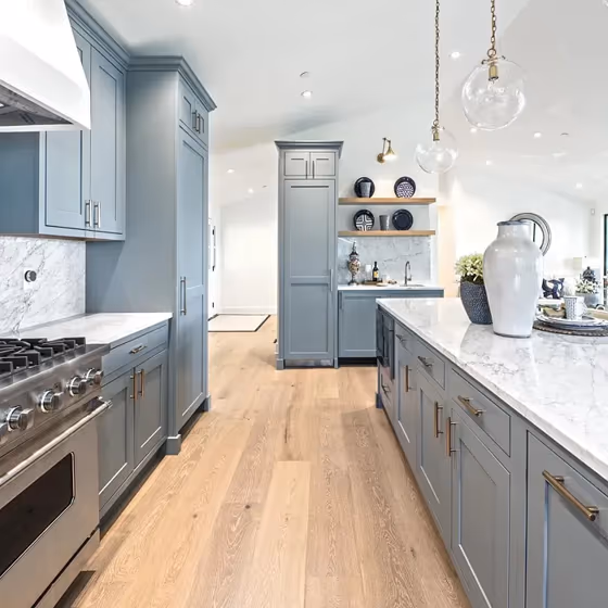 Want a stylish kitchen? View real-life photo examples of this fascinating cool hue is paired with backsplashes, countertops, and hardware.