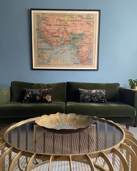 Check out this stunning Mid-tone color used in real living rooms. Explore how this Blue shade can create a unique space