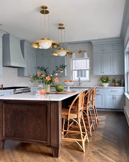 Want a stylish kitchen? View real-life photo examples of this fascinating cool hue is paired with backsplashes, countertops, and hardware.
