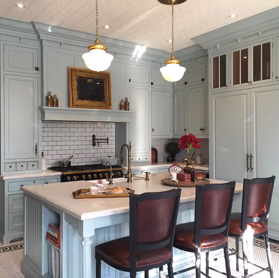 Want a stylish kitchen? View real-life photo examples of this fascinating cool hue is paired with backsplashes, countertops, and hardware.
