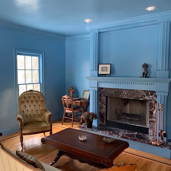 Check out this stunning Mid-tone color used in real living rooms. Explore how this Blue shade can create a unique space