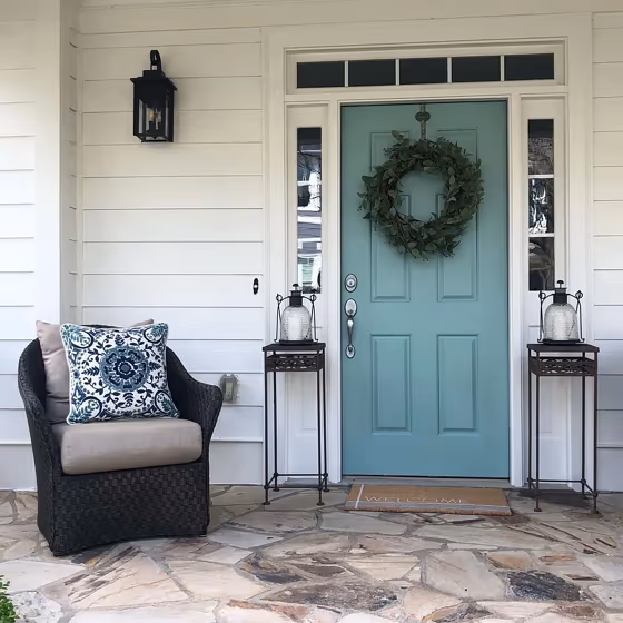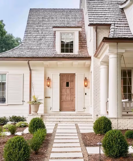 Looking for a fresh new look for your house exterior or starting from skretch? We’ve collected pictures of real-life homes that have been painted with this warm hue. Find inspiration for your house’s exterior, front doors, gates, shutters, frames or windows.