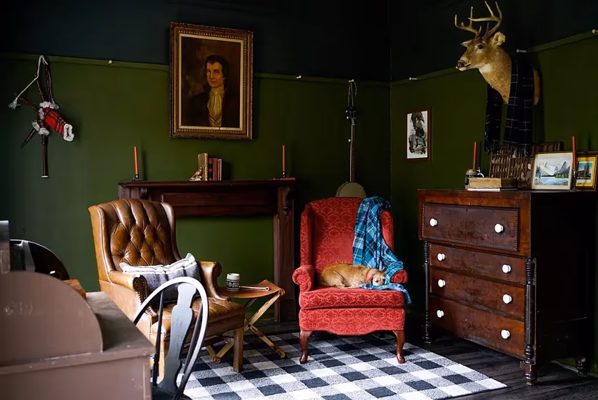 Check out this stunning Dark color used in real living rooms. Explore how this Green shade can create a unique space