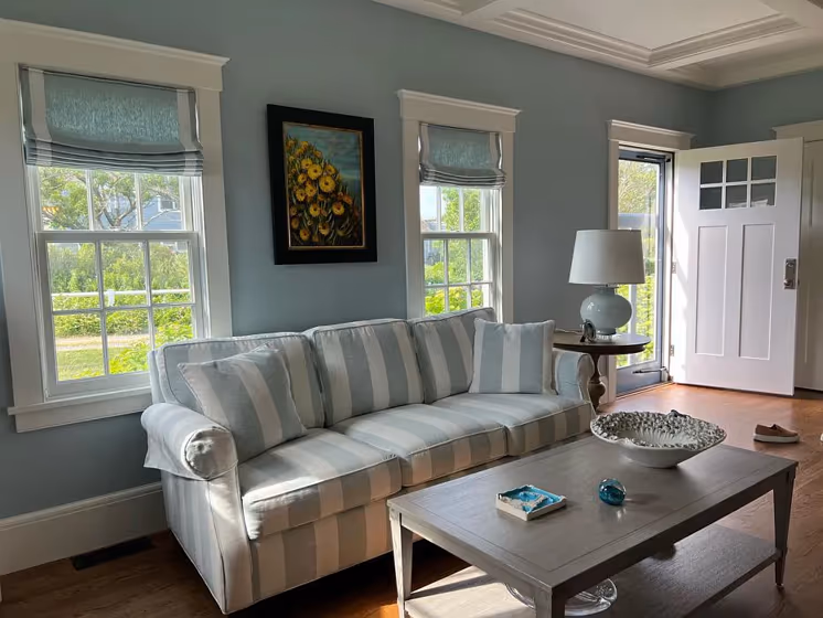 The enchanting hue of Yarmouth Blue (Benjamin Moore HC-150) evokes a sense of calm and serenity, making it perfect for creating tranquil spaces in your home. This timeless shade is ideal for bedrooms, where it can promote relaxation and restful sleep. In living areas, Yarmouth Blue brings a refreshing touch of seaside elegance, brightening the space with its subtle yet impactful presence. Whether used as an accent or as the main color, this versatile shade effortlessly pairs with both neutrals and bold tones, adding a sophisticated charm to any room. Transform your interiors with the soothing allure of Yarmouth Blue.